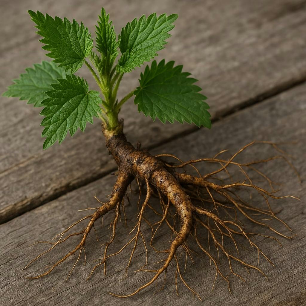 Korzeń pokrzywy zwyczajnej tradycyjnie wspiera zdrowie prostaty i układ moczowy. Może łagodzić objawy łagodnego przerostu prostaty (BPH) i wspomagać prawidłowe funkcjonowanie dróg moczowych.